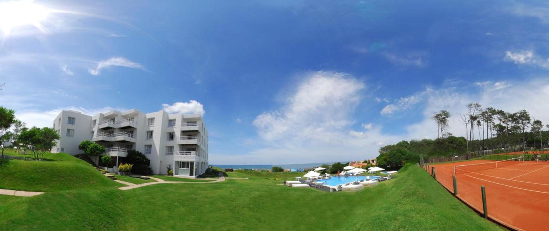 El hotel está rodeado de un parque de 9.000 metros cuadrados, lo que lo convierte en un lugar especial para la práctica de los deportes al aire libre, cuenta con 3 piscinas, solárium, 2 hidromasajes externos climatizados y juegos para niños.