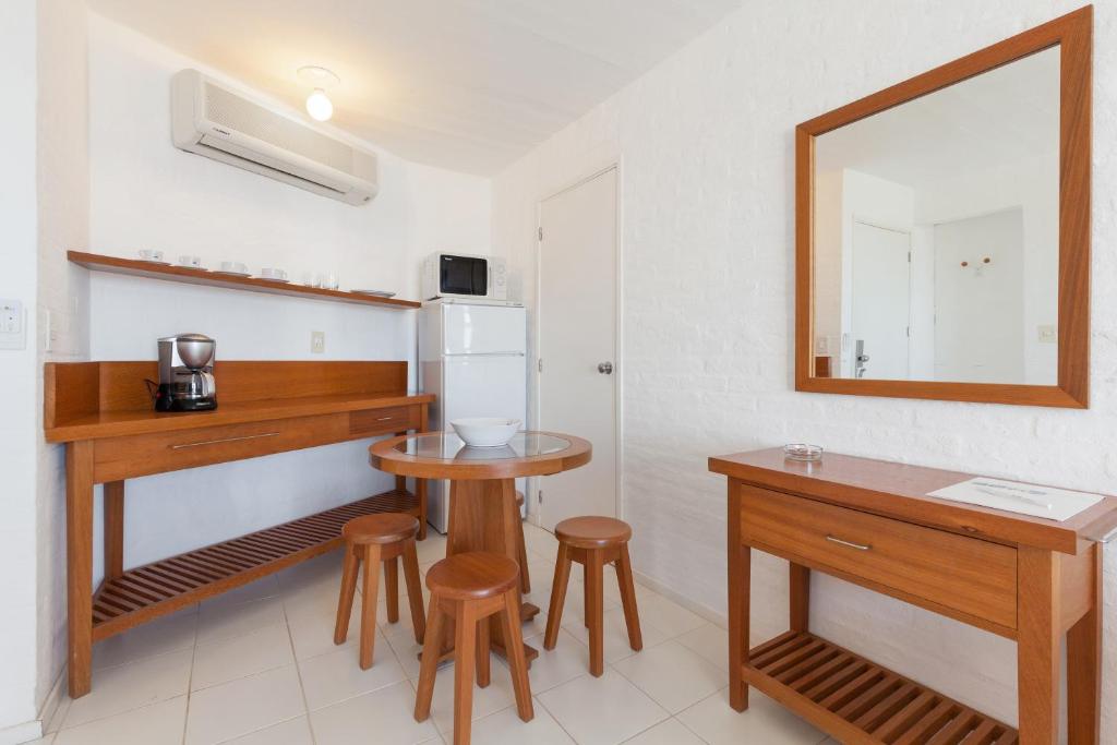 Las suites están distribuidas en dormitorio y baño completo, amplia zona de estar con sofá cama, totalmente equipadas con heladera con freezer, horno microondas, cafetera, jarra eléctrica y tostadora (no cuenta con fuegos ni lavabo). Aire acondicionado individual en cada ambiente, televisión con Cable y cofre de seguridad de apertura digital.